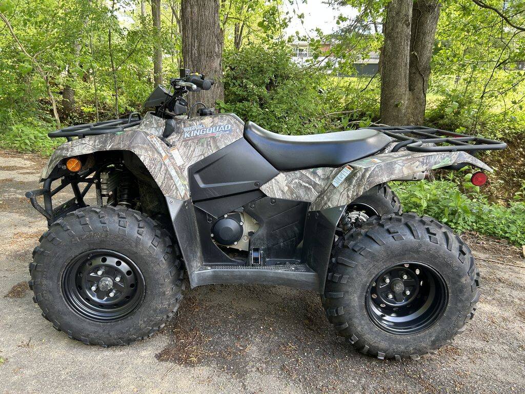 Whether you are working hard or getting away from it all, the 2023 Suzuki KingQuad 400ASi Camo helps you every step of the way. The fully automatic Quadmatic transmission has 2WD and 4WD modes to handle rough trail conditions while completing even the most demanding chores. Along with exceptional engine performance across the powerband, its high-performance iridium spark plug and Pulsed-secondary AIR-injection (PAIR) system help provide outstanding fuel efficiency and clean emissions.